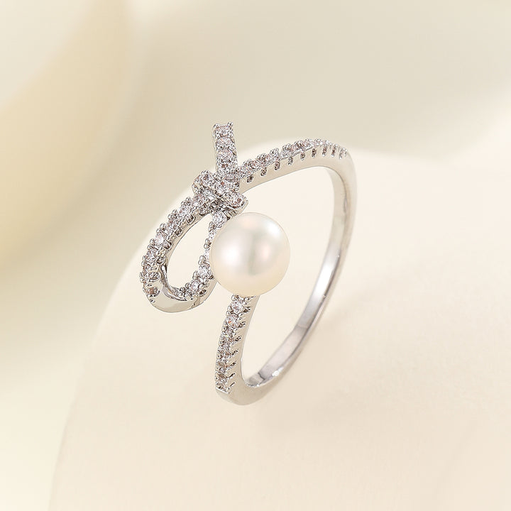 خاتم لؤلؤي حلزوني رائع مرصع بالأحجار الكريمة