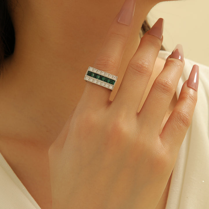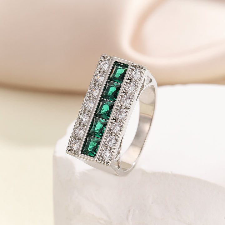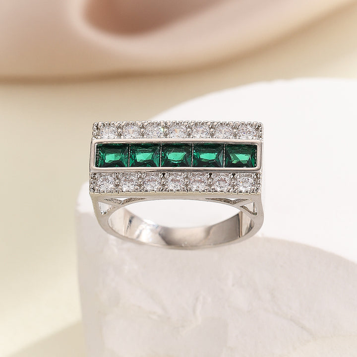 استمتعي بالأناقة المعاصرة مع خاتم "Modern Allure Emerald Gemstone Ring" الخاص بنا. يتميز إطاره المستطيل المركزي بأحجار كريمة زمردية نابضة بالحياة محاطة بلمسات من الماس المتلألئ، مما يوفر جاذبية عصرية ومتطورة.