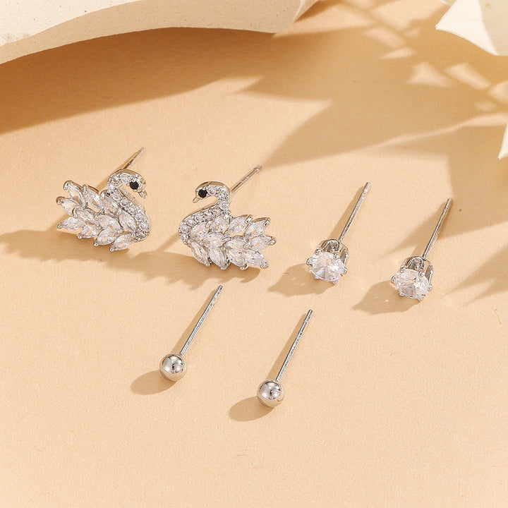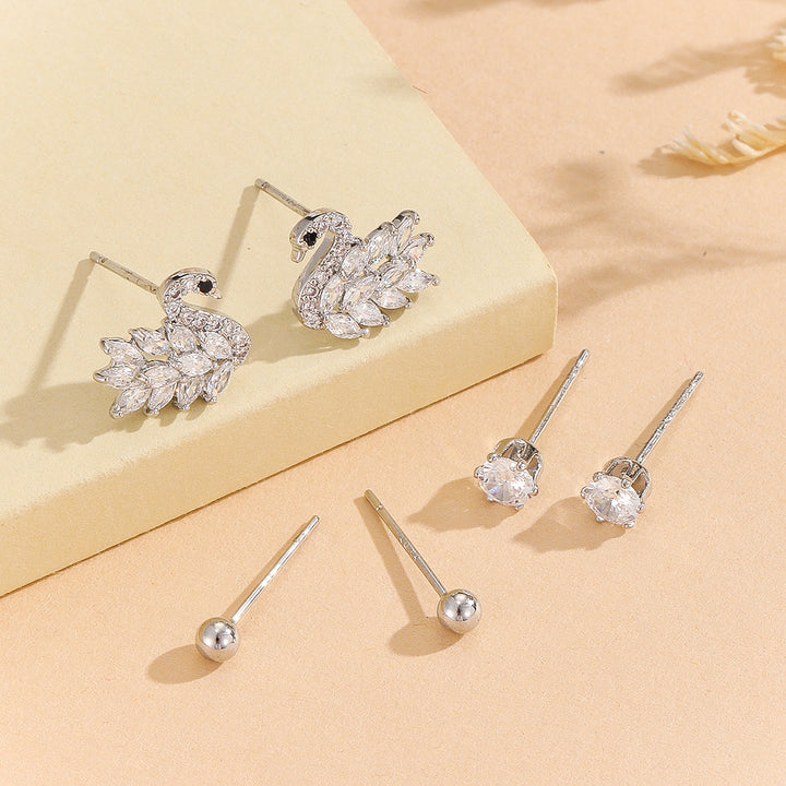 Our "Swan Luxe & Subtle Ball Studs" are the style exemplar. They feature intricately designed swan-shaped studs and simple gold balls, adding grace and classiness to any attire.